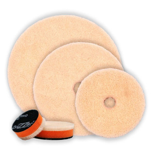 Utilisez des polish de finition et compounds moyens: Zvizzer MC 3000 Medium Cut pour one-step sur peintures tendres, FC 2000 Fine Cut pour finition et élimination hologrammes, UC 1000 Ultra Fine Cut pour finition finale ultra-douce, One Polish pour applications polyvalentes. Évitez les compounds très agressifs (PC 5000, HC 4000) qui ne sont pas optimaux avec la surface velours. Les Velour Pads sont conçus pour finition et correction modérée, pas pour défrisage agressif.